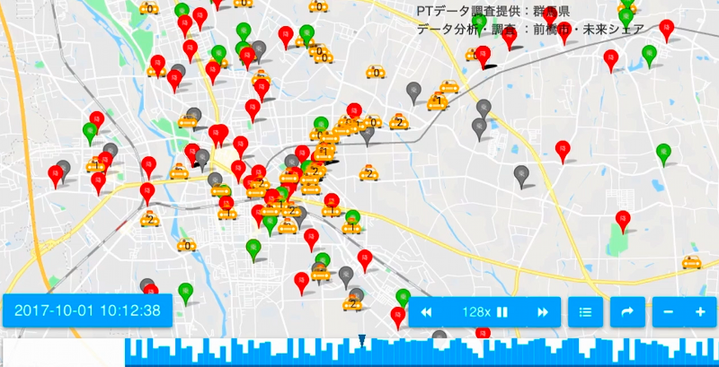 未来シェアは、前橋市とは交通課題解決を目指した調査・研究を進めており、NTTドコモとは次世代モビリティプラットフォーム構築の共同研究開発を進めております。 締結式では、群馬県より提供頂いた前橋市のパーソントリップ調査データを利用したSAVSシミュレーション結果をご紹介しました。