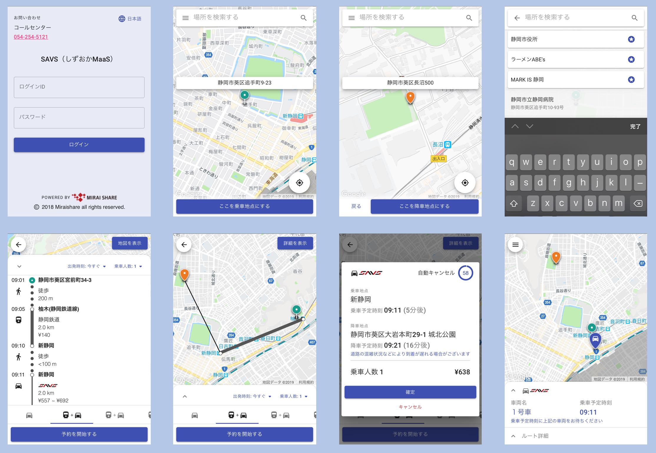 この度、未来シェアでは、SAVS (Smart Access Vehicle Service) の道路網上のオンデマンド・リアルタイム・便乗配車サービスによるドア・ツー・ドア送迎のメリットを最大限に活かすことを主目的としたMaaSアプリケーションを開発しました。