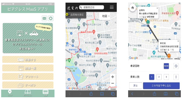 - 株式会社リサーチアンドソリューション:ピアクレス MaaS アプリを用いた 熊本市「健軍地区における AI デマンドタクシー実証実験」に参画いたします