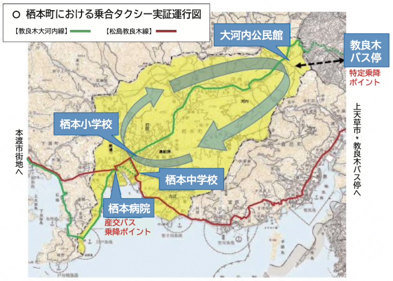 - 運行エリア:熊本県天草市 栖本町内全域 および 上天草市 教良木バス停