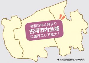 - 運行エリア:古河市内全域および茨城西南医療センター病院