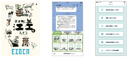 - 江差マース主な機能:①オンデマンド配車予約(コールセンター、LINE)および移動