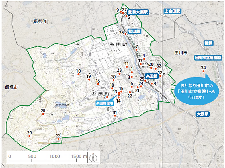 令和5年10月2日から令和6年3月29日まで福岡県糸田町にて、弊社提供のSAVSによるAI配車技術を活用した予約型乗合交通サービス「いっとこカー」のテスト運行が開始されます。本運行では、町内に33ヵ所・町外に1ヵ所の停留所が設置され、これらの停留所やご自宅との間を運賃無料で利用することができます。