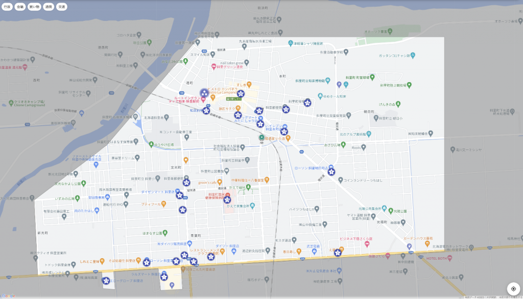 - 運行区域:斜里市街地内(青葉町、文光町、朝日町、港町、前浜町、光陽町、本町、新光町、豊倉はラルズ、イエローグローブ、サツドラ、ニコット)