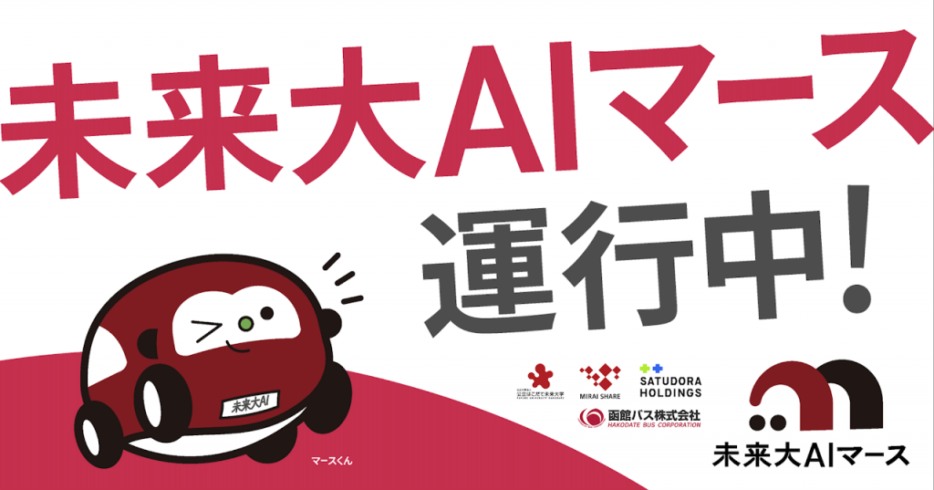 2023年10月16日(月)~ 2023年10月20日(金)にかけて、北海道函館市 赤川・美原エリアにおいて「未来大AIマース2」の実証運行を開始します。本実証運行は、公立はこだて未来大学の重点研究プロジェクト・スマートシティはこだての一環として、かつ公益財団法人 北海道科学技術総合振興センター(略称「ノーステック財団」)のチャレンジフィールド北海道事業の採択を受け、公立はこだて未来大学主催のもと、未来大発のベンチャーである弊社をはじめ、地域の公共交通事業者、小売事業者、交通情報提供サービス事業者が参画する産学連携で実施されます。