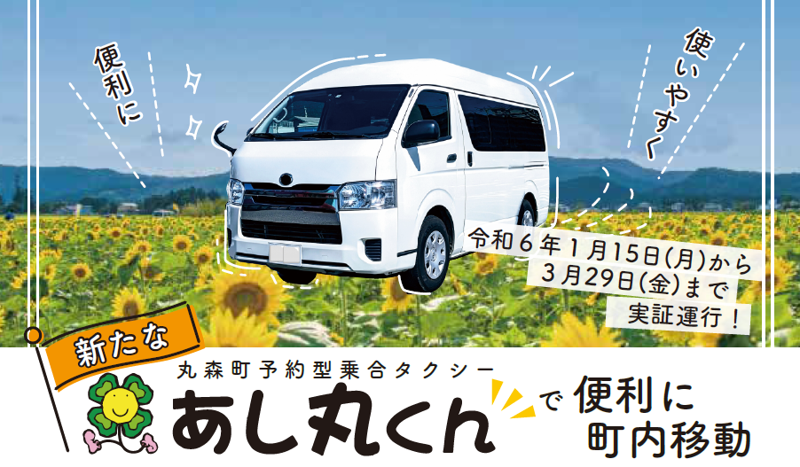 令和6年1月15日(月)より宮城県伊具郡丸森町において、新たな「あし丸くん」の実証運行を実施します。本実証運行は令和6年4月1日開始予定の本運行に先立ち実施されるもので、弊社提供のSAVS によるAI便乗配車計算技術を活用した乗合運行サービスで住民の皆様の移動をお助けします。