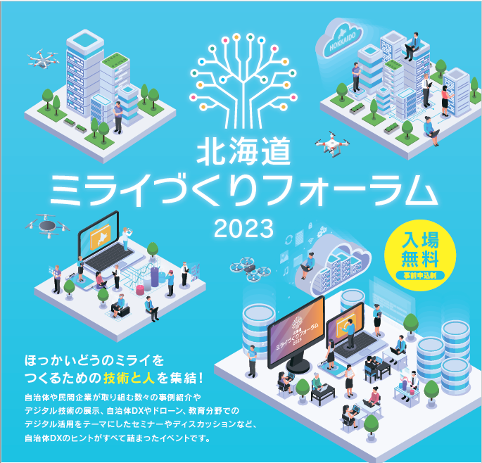 令和5年(2023年)11月2日(木)、ロイトン札幌にて「北海道ミライづくりフォーラム2023」が開催されます。自治体や民間企業が取り組む数々の事例紹介やデジタル技術の展示、自治体DXやドローン、教育分野でのデジタル活用をテーマにしたセミナーやディスカッションなど、自治体DXのヒントがすべて詰まったイベントです。