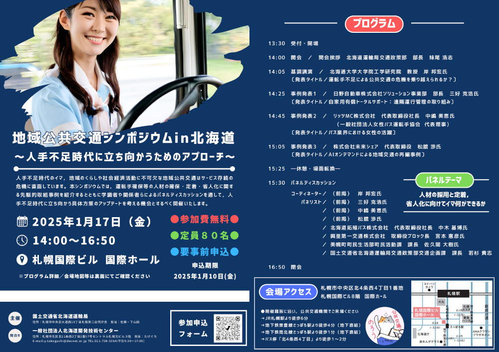 国土交通省北海道運輸局主催の「地域公共交通シンポジウムin北海道 〜 人手不足時代に立ち向かうためのアプローチ 〜」にて、当社代表取締役の松舘が登壇します。