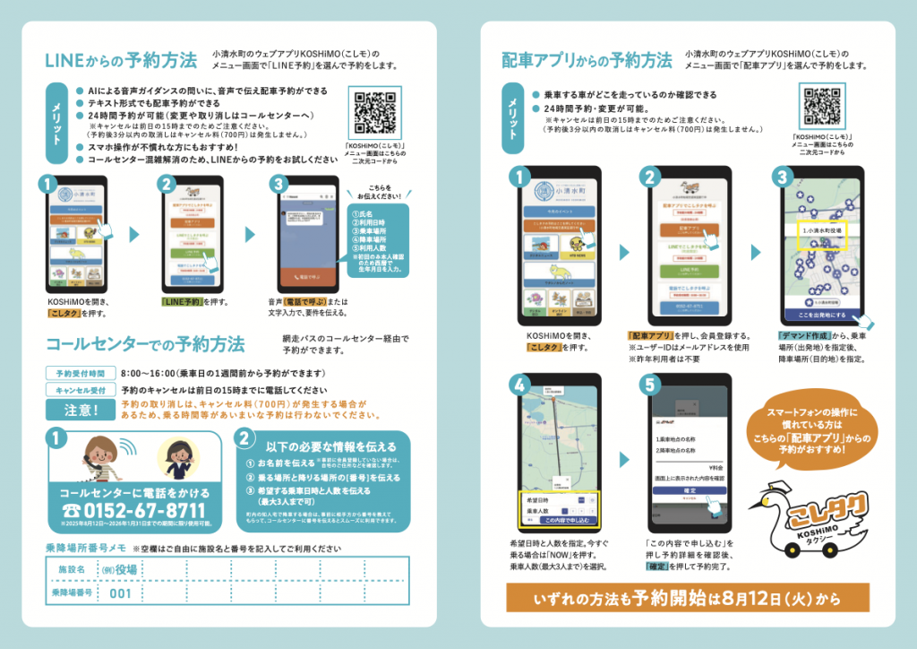 北海道小清水町 地域交通実証事業「KOSHiMO タクシー(こしタク)」運行開始のお知らせ