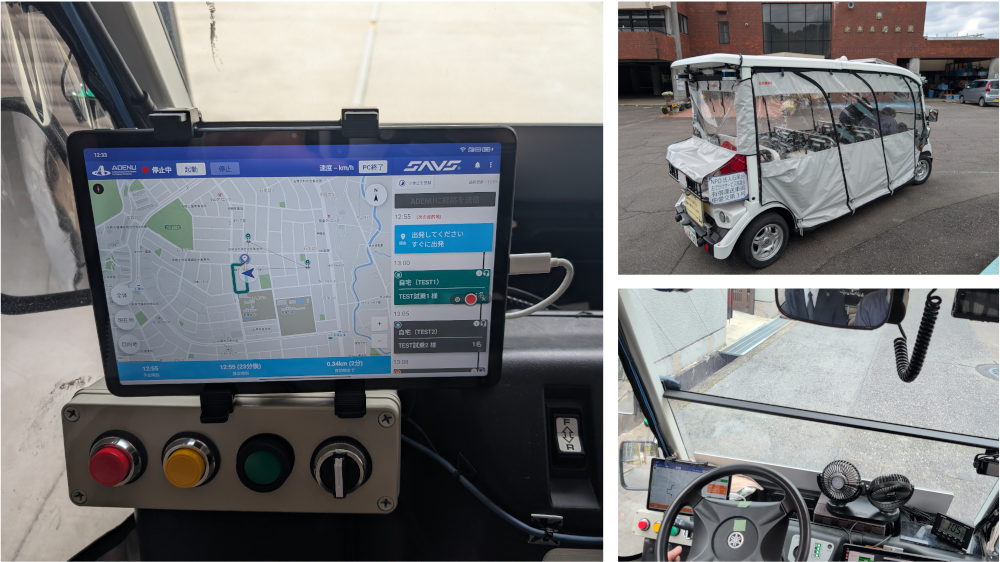 愛知県春日井市高蔵寺ニュータウンでは、春日井市と名古屋大学モビリティ社会研究所を中心とした産学官連携による、様々な先導的モビリティを活用したまちづくりに取り組んでいます。ニュータウン内の石尾台地区では、小型電動自動車(ヤマハカート)にエクセイド社の自動運転制御システムを取り付け、地域NPOスタッフの安全管理の元に、公共ライドシェアの枠組みにおいて Door to Door で地域住民の送迎を行っています。新バージョンのSAVSの導入により、レベル2の自動運転区間と手動運転区間それぞれのルートを一体的に案内し、リアルタイム配車の特徴を活かした、当日の急な乗車時刻変更や飛び込み利用にも対応したオンデマンド自動運転運行が可能となりました。