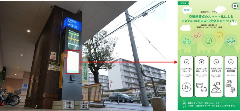 2023年1月30日より株式会社未来シェア(以下:未来シェア)、大日本印刷株式会社(以下:DNP)、春日井市、国立大学法人東海国立大学機構名古屋大学(以下:名古屋大学)、独立行政法人都市再生機構(以下:UR)、一般財団法人計量計画研究所(以下:IBS)、高蔵寺ニュータウンセンター開発株式会社(以下:高蔵寺センター)が参画する高蔵寺スマートシティ推進検討会(代表幹事:一般財団法人計量計画研究所)は、令和4年度国土交通省都市局スマートシティ実装化支援事業で採択された「交通結節点のスマート化によるにぎわいのある安心安全なまちづくり」の実証実験を開始します。本実証実験では、「DNPモビリティポート」*1を高蔵寺ニュータウンの商業施設や病院など5か所に設置し、ICカード連携による弊社提供のSAVSを活用したオンデマンド乗合タクシーの呼び出しや、シェアサイクルの利用に加え、SNS連携されたデジタルマップによる地域店舗の最新情報発信など、交通結節点のスマート化や、移動、回遊の効率化を促すことによる地域の活性化を目指します。また、モビリティポートによる交通結節点のスマート化による住民の移動・回遊への影響、課題を確認・分析し、オンデマンド乗合タクシーなどの新たな交通システムと既存公共交通のスムーズな乗換や、公共交通の利用を促進するクーポン等商業施設との連携など新たな交通結節点のあり方や導入について検討を進めていきます。