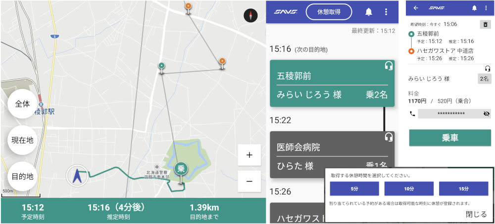 - 小休止要求:5分 / 10分 / 15分 等のドライバーのひとやすみ時間取得