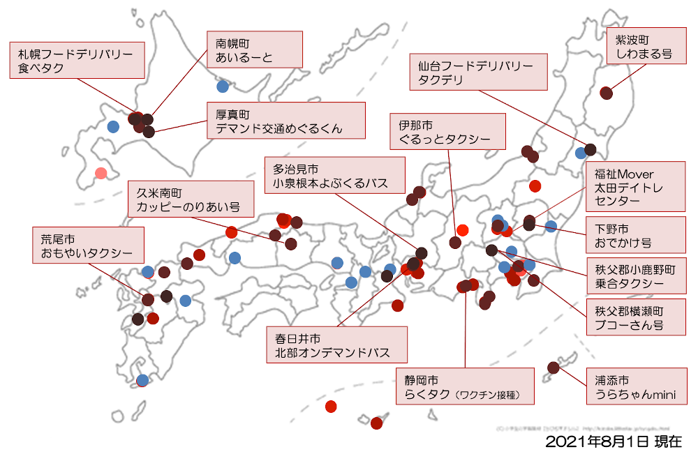 移動需要データ、タクシー配車記録、パーソントリップ調査データ等の交通データを解析し、SAVS導入による効果測定シミュレーションを行います。シミュレーション結果を可視化し、交通計画検討の為の材料を提供いたします。