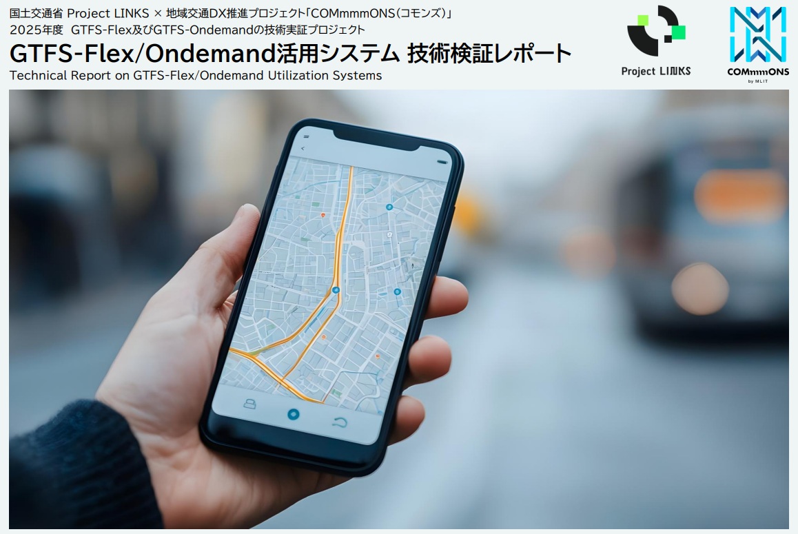 R7年度地域交通DX推進プロジェクト「COMmmmONS」内の「GTFS-Flex/Ondemand活用システムの開発プロジェクト」において、技術協力を行いました。本プロジェクトの成果をまとめたテクニカルレポートが、国土交通省ウェブサイトにて公開されましたのでお知らせいたします。