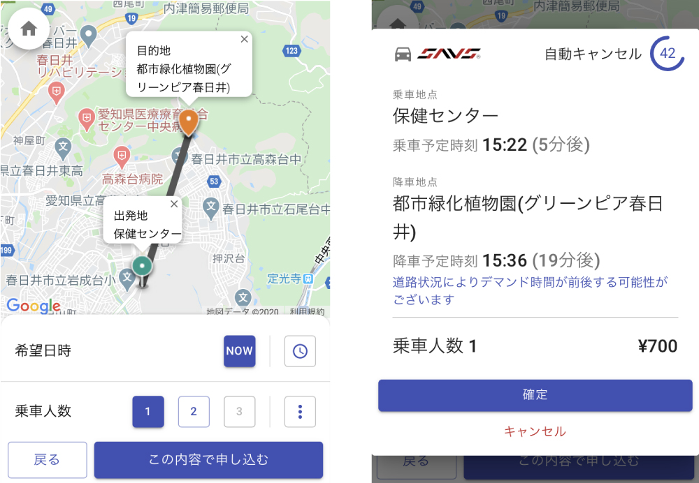 - 指定可能な希望時刻:乗車希望時刻 / 降車希望時刻 / 今すぐ乗車