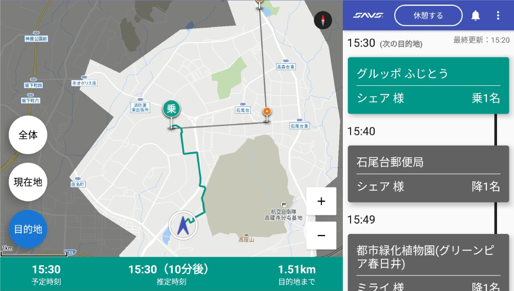 - 小休止要求:5分 / 10分 / 15分 等のドライバーのひとやすみ時間取得